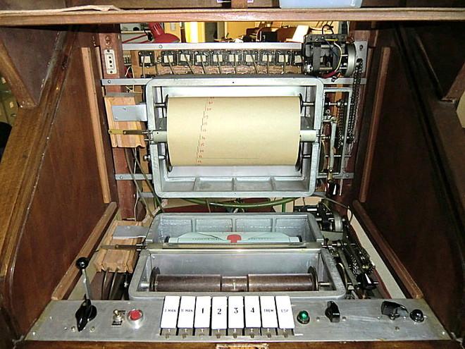 Auto-organo Barbieri 1960 (interno). Particolare della distribuzione dell'aria in depressione nela lettura dei fori della carta.